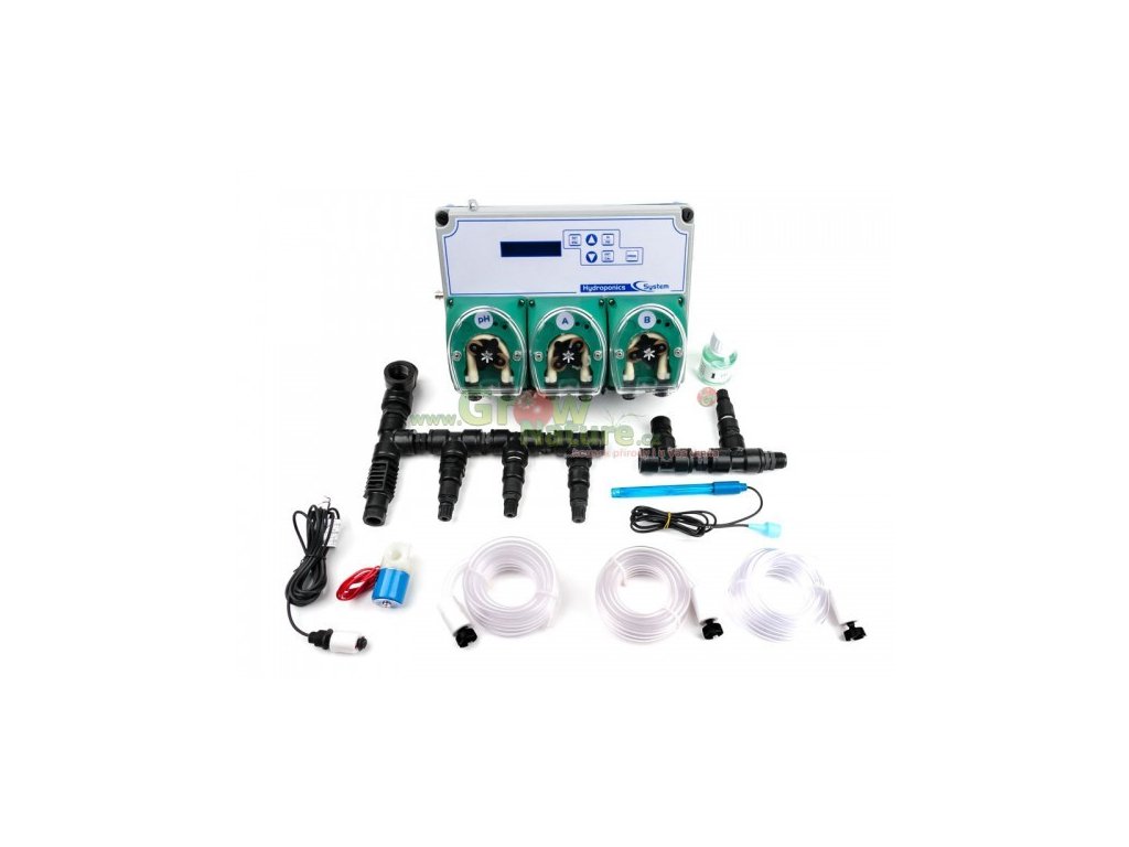 We supply two versions, the basic version includes 3 pumps, 2 for nutrient control (A and B component) 3 for pH regulation. The professional version has multiple pumps (4 pumps) for nutrients (A + B + C), and the last pump for pH control.