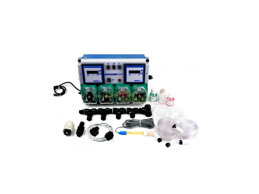 Flow control is adjustable. We supply two versions, the basic version includes 3 pumps, 2 for nutrient control (A and B component) 3 for pH regulation. The professional version has multiple pumps (4 pumps) for nutrients (A + B + C), and the last pump for pH control.